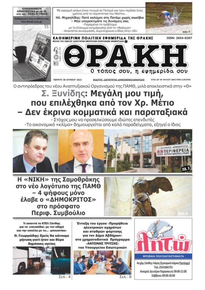 Το πρωτοσέλιδο της Θράκης (28/3)