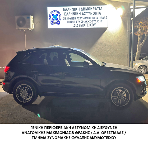 Στη δεύτερη περίπτωση, σε δασική περιοχή της Ροδόπης, αστυνομικοί του Τμήματος Συνοριακής Φύλαξης Σαπών της Διεύθυνσης Αστυνομίας Ροδόπης εντόπισαν Ι.Χ.Ε. αυτοκίνητο το οποίο νωρίτερα είχε εκτραπεί της πορείας του και είχε ανατραπεί σε παρακείμενη χαράδρα.