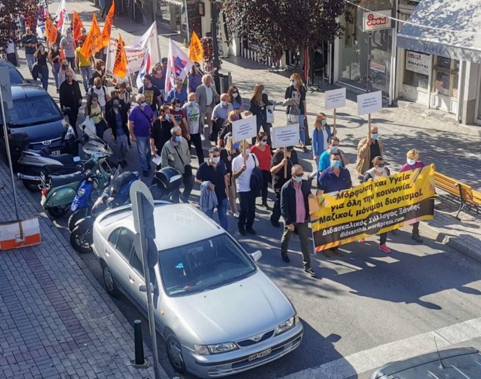 Με κύρια αιτήματα την μείωση των μαθητών ανά τμήμα, με μέγιστο τους 15 και με ένα μαθητή ανά θρανίο έτσι ώστε να τηρούνται οι απαραίτητες αποστάσεις, τους μόνιμους διορισμούς εκπαιδευτικών για την κάλυψη των ελλείψεων στα σχολεία, τα μαζικά και επαναλαμβανόμενα τεστ, δωρεάν από το κράτος, σε εκπαιδευτικούς και μαθητές καθώς και την αύξηση του προσωπικού καθαριότητας με μόνιμη σχέση εργασίας, ώστε να μπορούν να καλυφθούν οι αυξημένες ανάγκες σχολείων καθ’ όλη τη διάρκεια της λειτουργίας του σχολείου, συμμετείχαν στην σημερινή πανδημοσιοϋπαλληλική απεργία ο Διδασκαλικός Σύλλογος καθώς και η ΕΛΜΕ Ξάνθης, όπως επιβεβαιώνουν οι πρόεδροί τους κ. Δημήτρης Ντούμος και Σοφία Ζήση, αντίστοιχα.