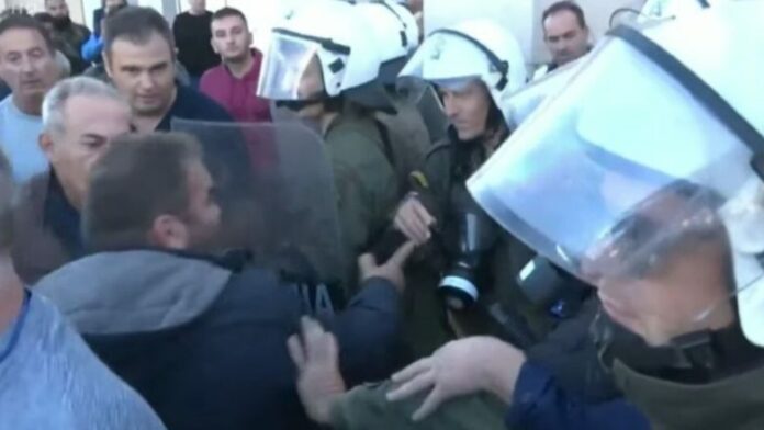 Λίγο πριν τις 10 το πρωί σημειώθηκε ένταση μεταξύ των αγροτών και ισχυρών αστυνομικών δυνάμεων που έχουν παραταχθεί στο αεροδρόμιο.