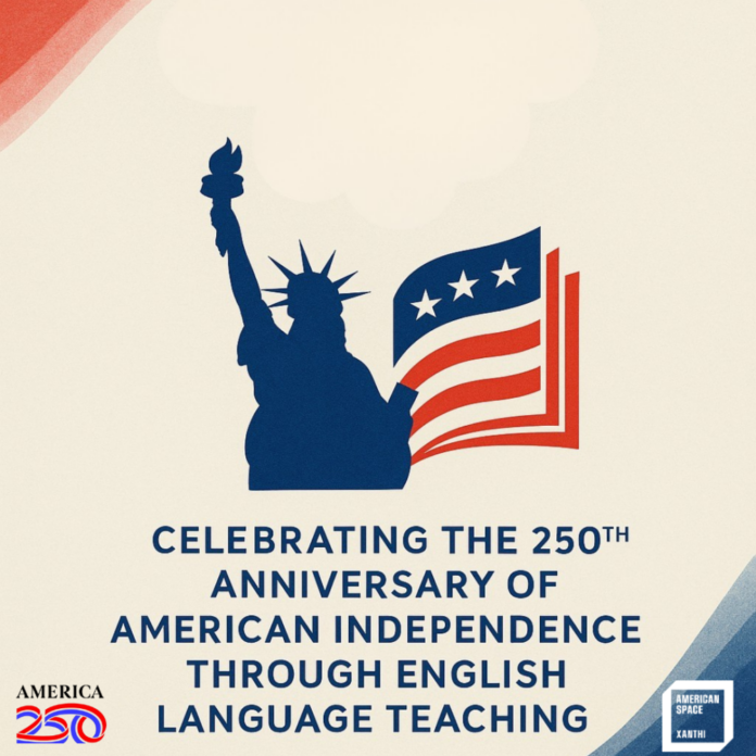 Η εκδήλωση, με τίτλο “America 250: Celebrating the 250th Anniversary of American Independence through English Language Teaching” , απευθύνεται σε εκπαιδευτικούς της Αγγλικής γλώσσας και πολιτισμού, αλλά και σε κάθε ενδιαφερόμενο/η. Πραγματοποιείται με την υποστήριξη της Αμερικανικής Πρεσβείας στην Αθήνα και του Δήμου Ξάνθης.