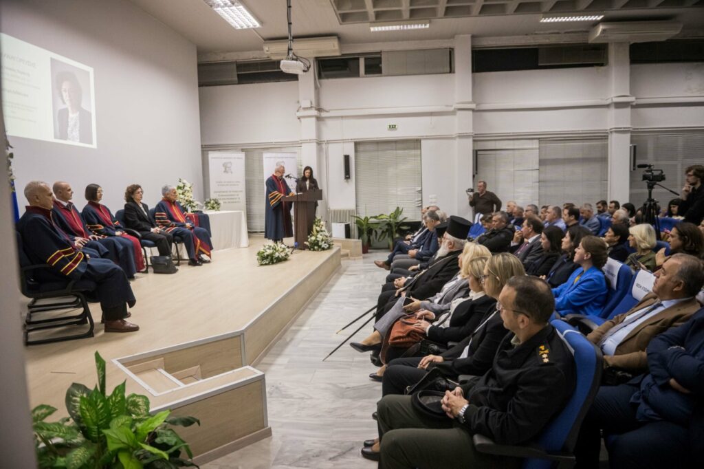 Μετά την ανάγνωση του Ψηφίσματος Αναγόρευσης από τον Πρόεδρο του Τμήματος Καθηγητή Γεώργιο Τσαντόπουλο, ακολούθησε η Περιένδυση της τιμώμενης από τον Πρύτανη του ΔΠΘ και η Επίδοση των Μεμβρανών .