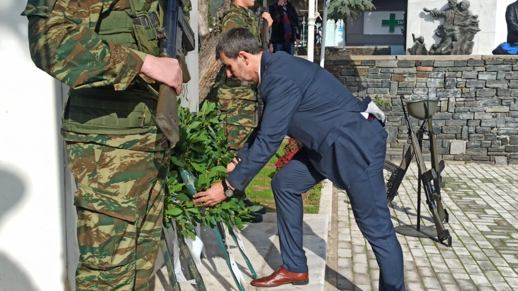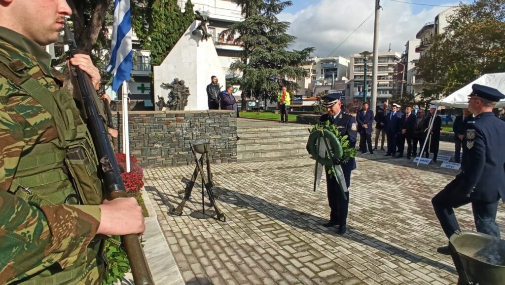 Η ημέρα, ξεκίνησε με την επίσημη έπαρση της Σημαίας στην Κεντρική Πλατεία της πόλης με τη συμμετοχή της στρατιωτικής μουσικής της ΑΣΔΙΘ και τιμητικού στρατιωτικού αγήματος.