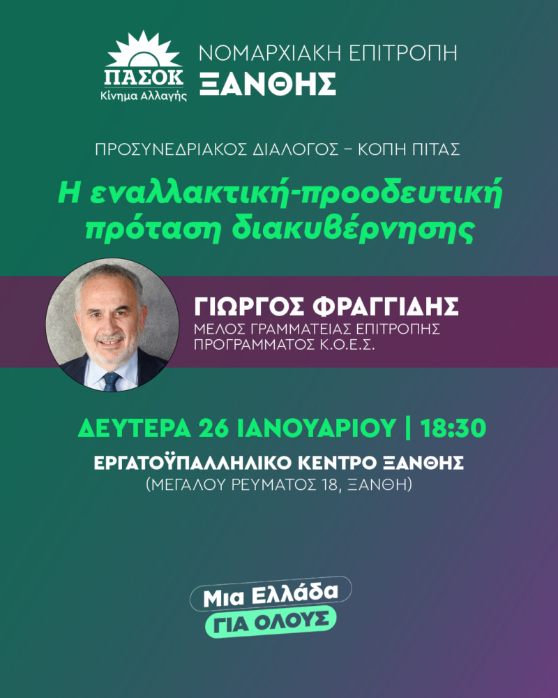 Η Νομαρχιακή Επιτροπή Ξάνθης του ΠΑΣΟΚ – Κινήματος Αλλαγής προσκαλεί όλα τα μέλη και τους φίλους της παράταξης στον
