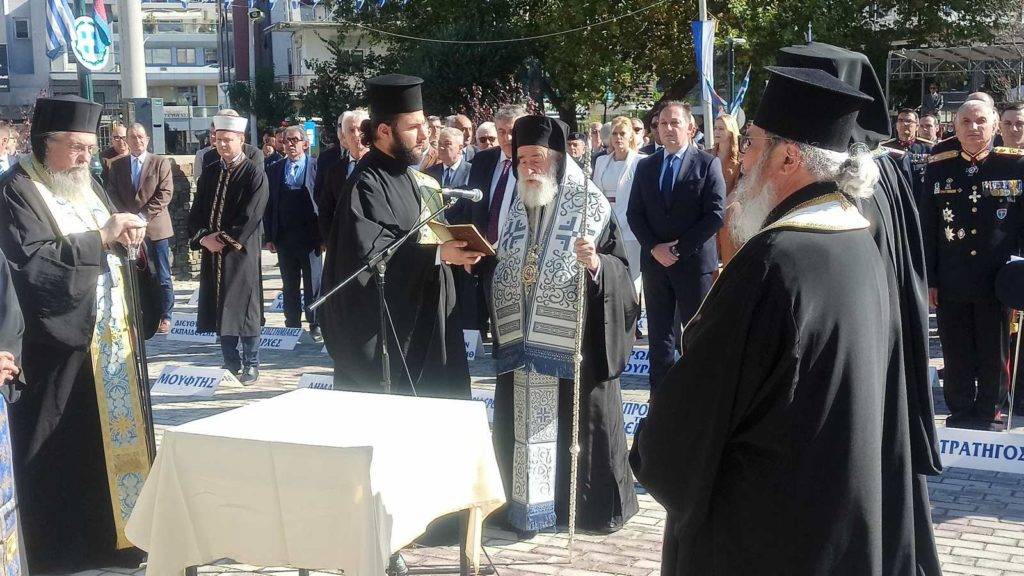 Νωρίτερα, στο ηρώο της πόλης, τελέσθηκε επιμνημόσυνη δέηση χοροστατούντως του Σεβασμιοτάτου Μητροπολίτη Ξάνθης και Περιθεωρίου, ενώ κατατέθηκαν στεφάνια, απο τις πολιτικές και στρατιωτικές αρχές του τόπου και εκπροσώπους φορέων και κομμάτων.