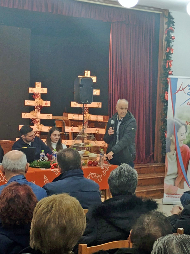 Οι εισηγητές της εκδήλωσης (Νευροψυχολόγος – Νευρολόγος – Φυσιοθεραπευτής – Διατροφολόγος) ανέλυσαν σχεδόν για δύο ώρες κάθε πτυχή της νόσου με τη συμμετοχή του κόσμου να είναι ιδιαίτερα σημαντική με παρεμβάσεις, ερωτήματα και έντονο ενδιαφέρον.