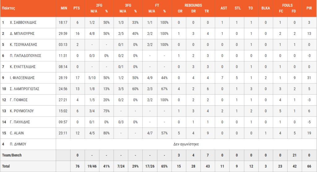 | ΓΑΛΑΤΙΣΤΑ – ΜΟΥΔΑΝΙΑ | 76-42 |
