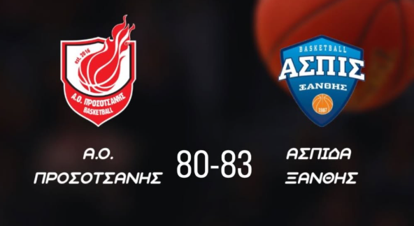 Ισόπαλο με 16-16 το α’ δεκάλεπτο με την Προσοτσάνη να πηγαίνει στο ημίχρονο με 39-37 μπροστά στο σκορ και στο φινάλε του Γ’ δεκάλεπτου να έχει ένα +8 με το 63-55. Στο τελευταίο κομμάτι του αγώνα όμως οι “γαλάζιοι” πέτυχαν 11 πόντους παραπάνω και με ένα επιμέρους 17-28 πανηγύρισαν τη νίκη με 80-83, έχοντας για κορυφαίους επιθετικά τους Φιλοξενίδη και Στουρνάρα που σημείωσαν 30 και 25 πόντους με 4 και 2 τρίποντα αντίστοιχα.