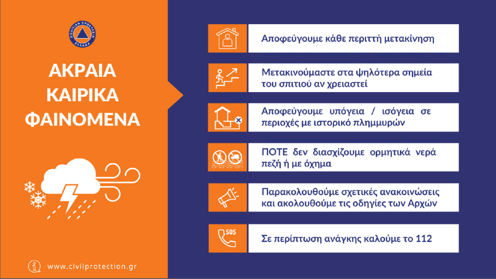 Ακολουθούν οδηγίες αυτοπροστασίας από την Γενική Γραμματεία Πολιτικής Προστασίας: