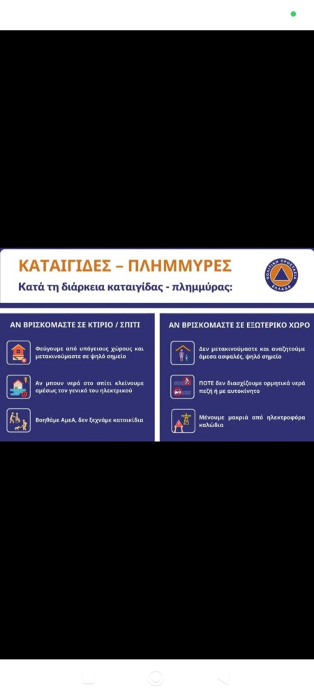 Ζητάμε την προσοχή όλων, κατά την έναρξη και εμφάνιση των φαινομένων προκειμένου να αποφύγουμε ατυχήματα και τραυματισμούς.