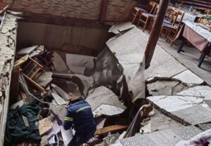 Σκηνές πανικού εκτυλίχθηκαν το μεσημέρι του Σαββάτου σε ταβέρνα στη Ροδόπη, όταν το πάτωμα του καταστήματος υποχώρησε ξαφνικά. Το ατύχημα είχε ως αποτέλεσμα οι θαμώνες τεσσάρων τραπεζιών να πέσουν στο κενό.