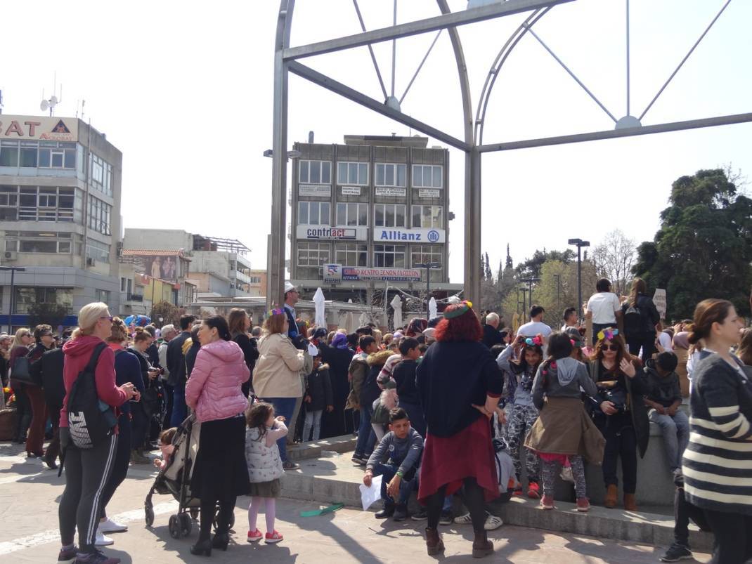 Μαθητές των σχολείων συγκεντρώθηκαν στην Πλατεία Ελευθερίας, από όπου ξεκίνησε μια πομπή στον κεντρικό δρόμο της πόλης, τραγουδώντας τα κάλαντα της Άνοιξης με τη συνοδεία μουσικών οργάνων.
