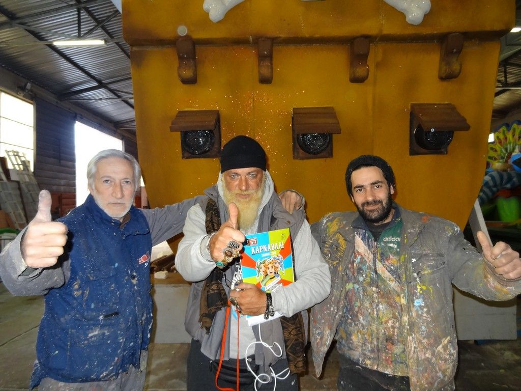 Από την δική του πλευρά ο «μεγαλειότατος» Παναγιώτης Γεωργίου συνεχάρη τους δύο καλλιτέχνες και όλη την ομάδα και σημείωσε: «είναι πραγματικοί καλλιτέχνες οι άνθρωποι αυτοί. Τα δικά μου χέρια δεν «πιάνουν» ούτε ένα…καρφί να χτυπήσω. Είχα άλλο πρόγραμμα σήμερα, μετά το μεσημέρι, αλλά είμαι από τις 9.00 το πρωί εδώ και δεν θέλω να κλείσουν. Θέλω να καθίσω μαζί τους, για να δω τι κάνουν. Είναι καλλιτέχνες. Το πειρατικό καράβι είναι στην κυριολεξία εξαιρετικό. Θα το χαρεί όλος ο κόσμος που θα παραβρεθεί στην παρέλαση και όλοι όσοι το δουν από την τηλεόραση. Είναι πάρα πολύ ωραίο, μεγάλο, εντυπωσιακό και με ωραία χρώματα. Βέβαια και τα υπόλοιπα άρματα είναι εξαιρετικά. Πιστεύω ότι ο κόσμος θα ευχαριστηθεί. Συγχαρητήρια και στον Ανδρέα και στον Κωνσταντίνο και σε όλη την ομάδα τους. Συγχαρητήρια στους ανθρώπους που έχουν αυτές τις εμπνεύσεις και τις ιδέες για να βγάλουν αυτά τα άρματα και χαίρομαι ιδιαίτερα για το ότι το συγκεκριμένο θέμα, αποφασίσθηκε την τελευταία στιγμή για τον βασιλιά και όλα έγιναν μέσα σε πολύ μικρό χρονικό διάστημα. Δεν έχει ούτε μια εβδομάδα που οι άνθρωποι αυτοί ξεκίνησαν το πειρατικό καράβι. Κατευθείαν πήρε την ιδέα ο κ. Λύρατζης, με πρότειναν, έγιναν όλα τόσο γρήγορα και μέσα σε μια εβδομάδα, έχει βγει αυτό το εξαιρετικό αποτέλεσμα και έχουν μείνει μόνο οι λεπτομέρειες που θα κάνουν πιστεύω και την διαφορά στο καράβι αλλά και σε όλα τα υπόλοιπα άρματα».