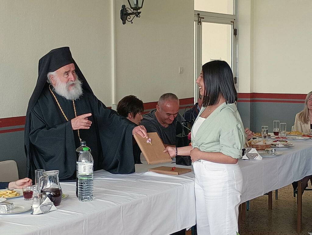 Τη Δευτέρα 15 Μαΐου στη 13.00 το μεσημέρι παρατέθηκε γεύμα στην τραπεζαρία του Πρότυπου Εκκλησιαστικού Σχολείου Ξάνθης. Στο γεύμα παραβρέθηκαν ο Μητροπολίτης Ξάνθης κ.κ. Παντελεήμονας, ο Αντιπεριφερειάρχης Ξάνθης κ. Κωνσταντίνος Κουρτίδης, η Δ/ντρια Β/θμιας Εκπαίδευσης Ξάνθης κα. Μάλαμα Σιδηροπούλου, η Δ/ντρια Α/θμιας Εκπαίδευσης Ξάνθης κα. Ευμορφία Στυλιανίδου, η Σύμβουλος Παιδαγωγικής Ευθύνης της Σχολικής Μονάδας κα. Όλγα Γκούμα, ο κ. Γεώργιος Αργυρόπουλος ο οποίος θα αναλάβει χρέη νέου Δ/ντη από το νέο σχολικό έτος, ο αστυνομικός Δ/ντης κ. Πασχάλης Γιώρης, ο Διοικητής της Πυροσβεστικής κ. Ιωάννης Αραμπατζής, ο εκπρόσωπος του Διοικητή του Δ΄ ΣΣ, και μέλη της Σχολικής Εφορίας.