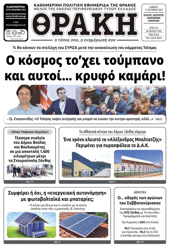 Το πρωτοσέλιδο της Θράκης (11/10)