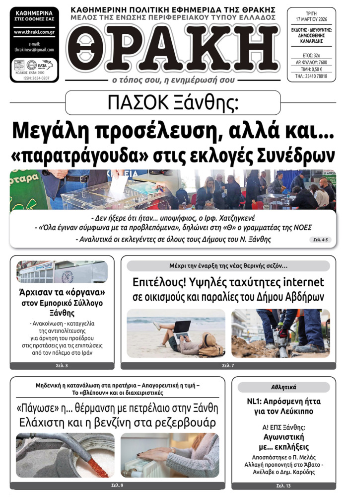 Το πρωτοσέλιδο της Θράκης (17/3)