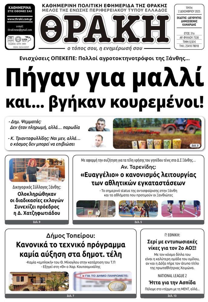 Το πρωτοσέλιδο της Θράκης (2/12)