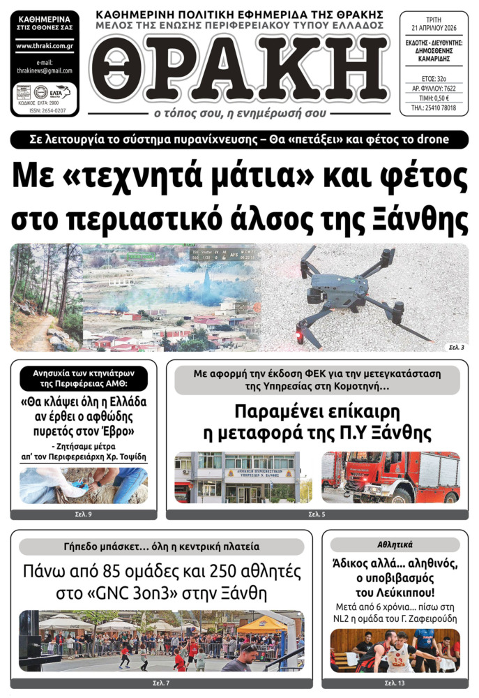 Το πρωτοσέλιδο της Θράκης (21/4)