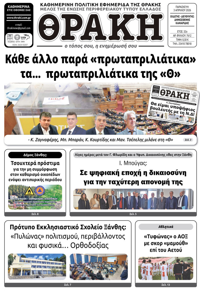 Το πρωτοσέλιδο της Θράκης (3/4)