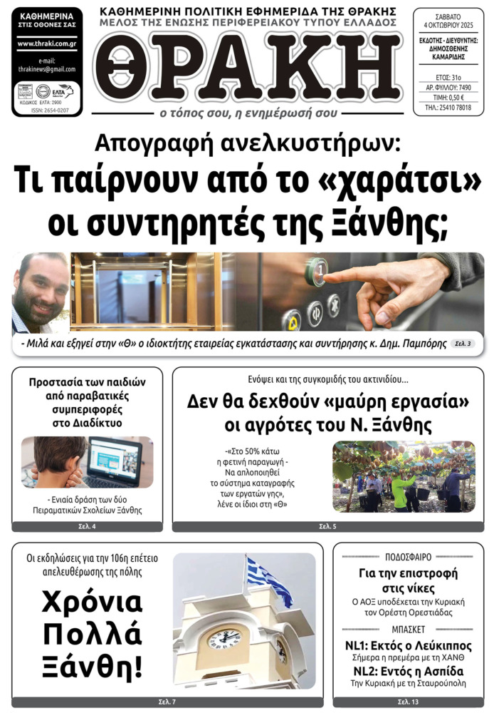 Το πρωτοσέλιδο της Θράκης (4/10)