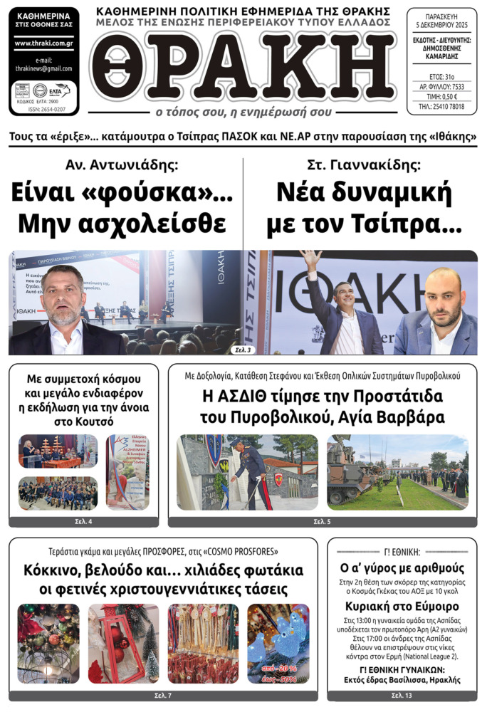Το πρωτοσέλιδο της Θράκης (5/12)