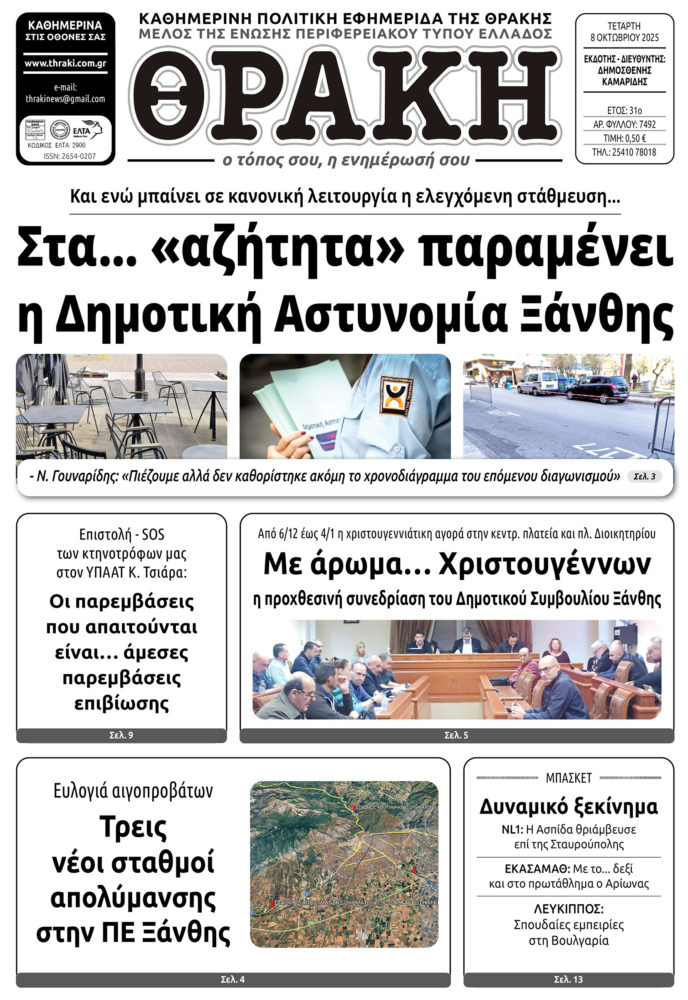 Το πρωτοσέλιδο της Θράκης (8/10)