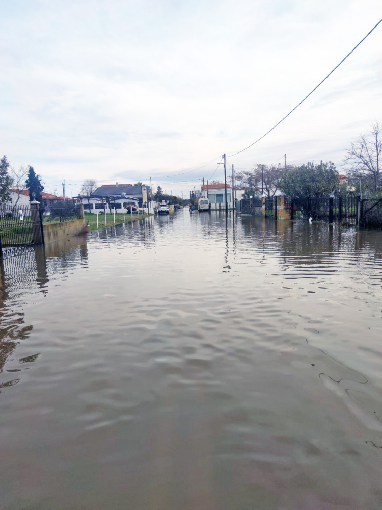 Το νερό εγκλωβίζεται στην άσφαλτο, ιδιαίτερα από την πλευρά της Σκάλας Μυρωδάτου προς τα Άβδηρα, στο μεγαλύτερο κομμάτι του παραλιακού δρόμου, ενώ σε αρκετές περιπτώσεις το νερό εισχωρεί στις αυλές των σπιτιών και τα καθιστά απροσπέλαστα, παρά μόνον με… βάρκα!